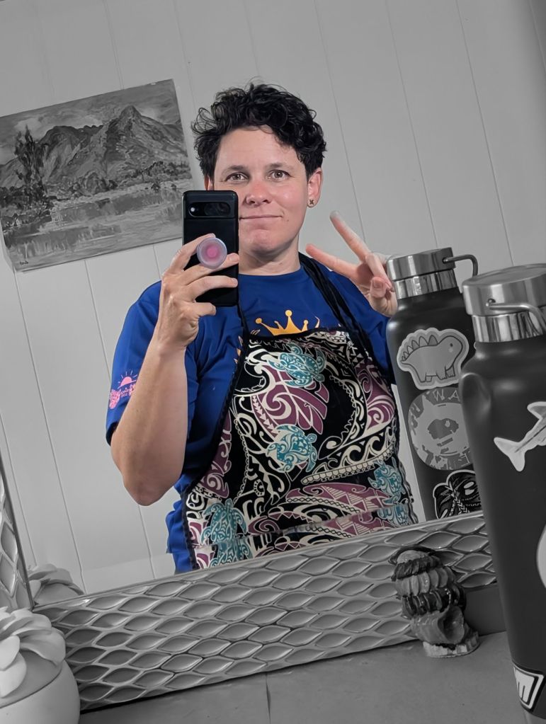 A lifelong kamaʻaina of Oʻahu, born and raised in Kailua, Alana hopes to serve their community with humility, generosity, kindness and creativity. They take inspiration from Native Hawaiian culture and ʻŌlelo Hawaiʻi, and hopes this resonates with her customers.