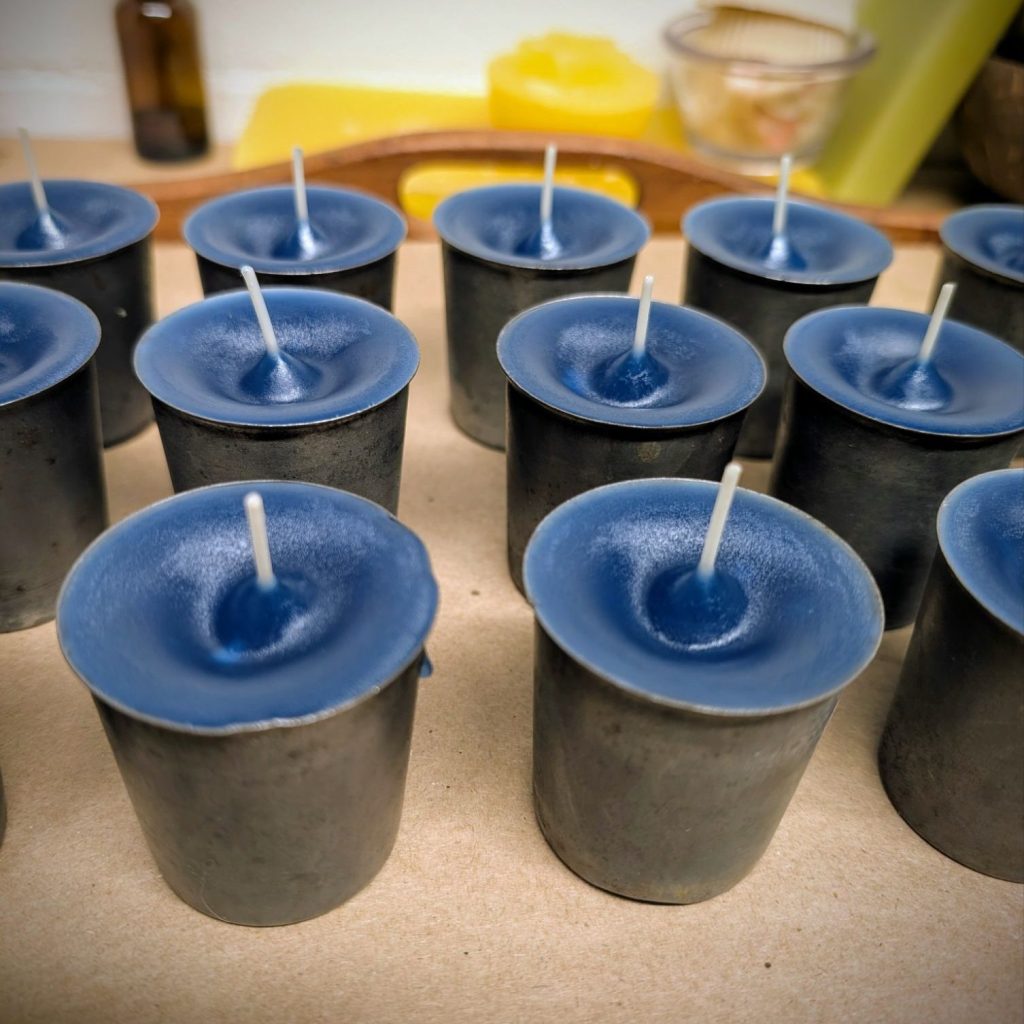 Includes 2 votive molds, 3 wicks & wax